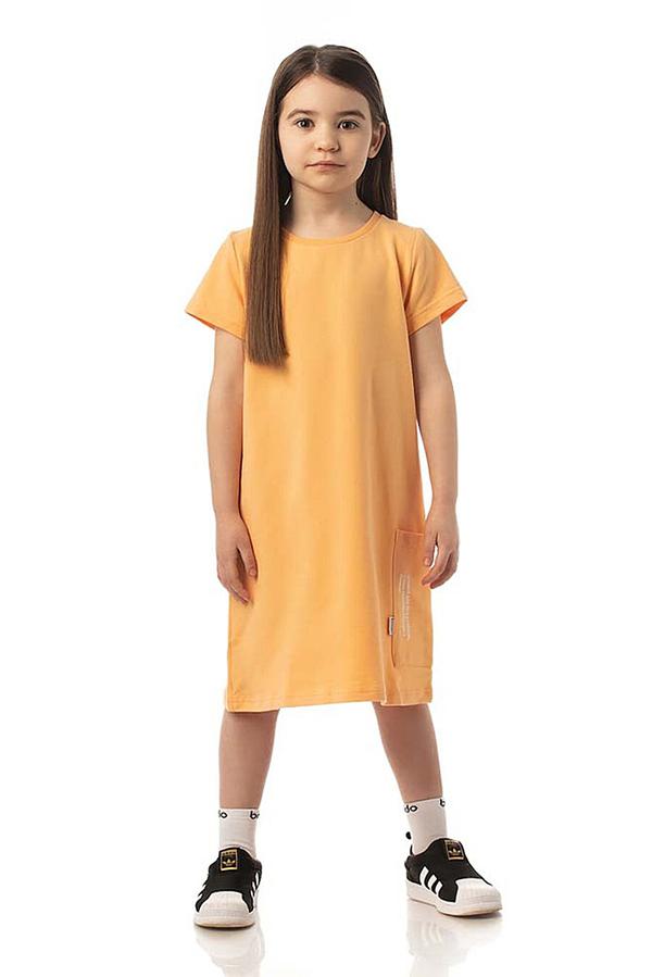 Платье для девочек. Детали: свободный покрой, округлый вырез горловины, короткие рукава, без застежек, накладной карман. Состав: футер двухнитка 92% хлопок, 8% лайкра.