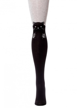 Колготки для девочки, с кошечкой на коленках, с рисунком из страз - лапки кошки. Интересный и необычный вариант для повседневной носки. Не маломерят, при выборе лучше ориентироваться на больший рост. Предварительная стирка обязательна. Рекомендовано стирать вручную. Не гладить.