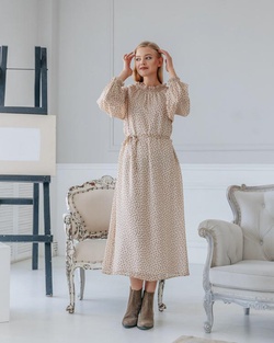 Платье из шифона. Воздушное платье из шифона на подкладе из вискозы, горловина -сборка, рукав-реглан. Застежка капелька по спинки на пуговицу. Длина изделия-120см.