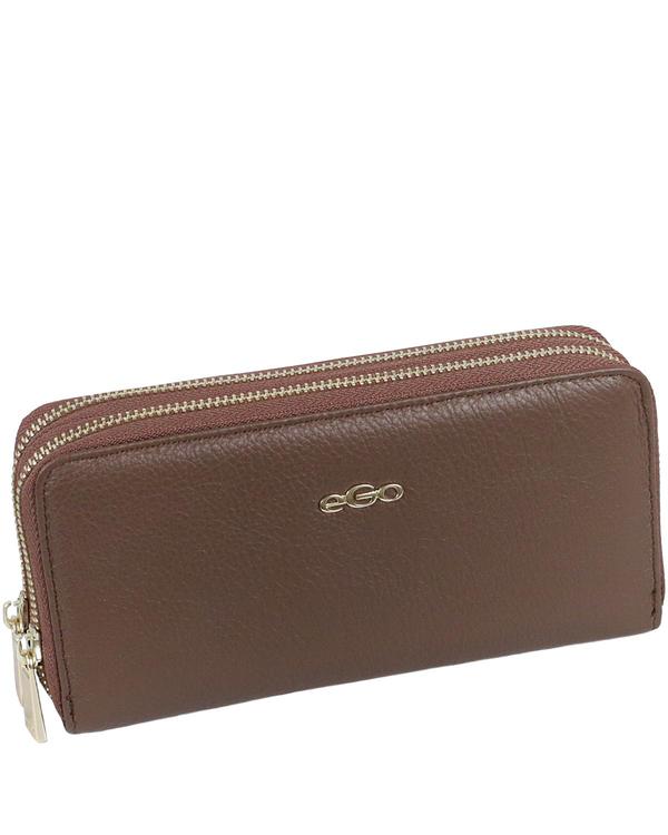 Модный кошелек закрывается двумя металлическими молниями по кругу. На лицевой стороне кошелька расположен логотип "EGO". Внутри кошелька шесть отделов, один из них для монет на молнии. Для удобства в кошельке есть 8 карманчиков для визитных и банковских карт. Тканевая подкладка кошелька с фирменным логотипом. Благодаря дополнительному ремешку кошелек удобно носится в руке как клатч. Аксессуар упакован в фирменную коробочку и может стать отличным подарком. Дополнительно предлагается оригинальная подарочная упаковка с логотипом бренда в каталоге " УПАКОВКА "