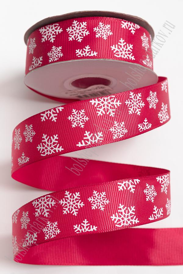 / Лента репсовая 2,5 см*20 ярд с рисунком "Снежинки" SF-6133, бордовый №033