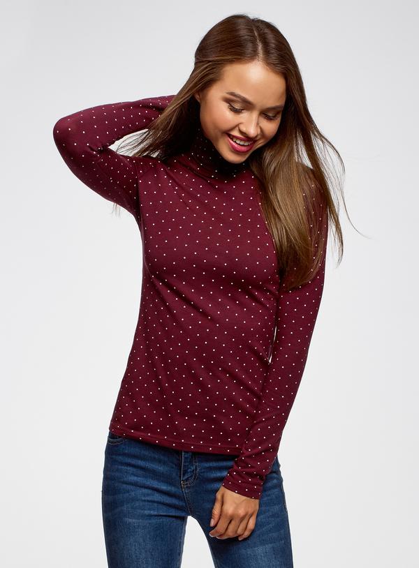 Принтованная водолазка с высоким воротником гольф. Модель прямого кроя мягко очерчивает фигуру. Высокий ворот защищает шею от проникновения холодного воздуха. Оживляет базовую модель фантазийный узор. Хлопковый трикотаж мягок, долговечен, хорошо пропускает воздух. Базовая водолазка с узором подойдет для любого гардероба. Эта универсальная вещь легко сочетается с другой одеждой. На работе она будет отлично смотреться с юбкой-карандашом или строгими брюками. Юбка-тюльпан или модель в складку – тоже удачное решение. Завершат деловой образ туфли-лодочки или лоферы, а для важных документов подойдет сумка-портфель или тоут. Для повседневных дел и забот лучше выбрать комплект с расклешенной юбкой, брюками-чиносами, прямыми или зауженными джинсами. Обувь на платформе или толстой подошве гармонично дополнит такой образ. Сумка хобо или рюкзак украсят неформальный лук. Комфортная водолазка – очевидный выбор на каждый день