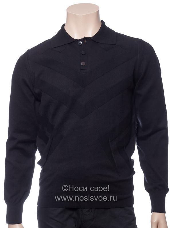 Классический мужской джемпер с длинными рукавами и воротником-поло застегивается на небольшую планку с пуговицами спереди.