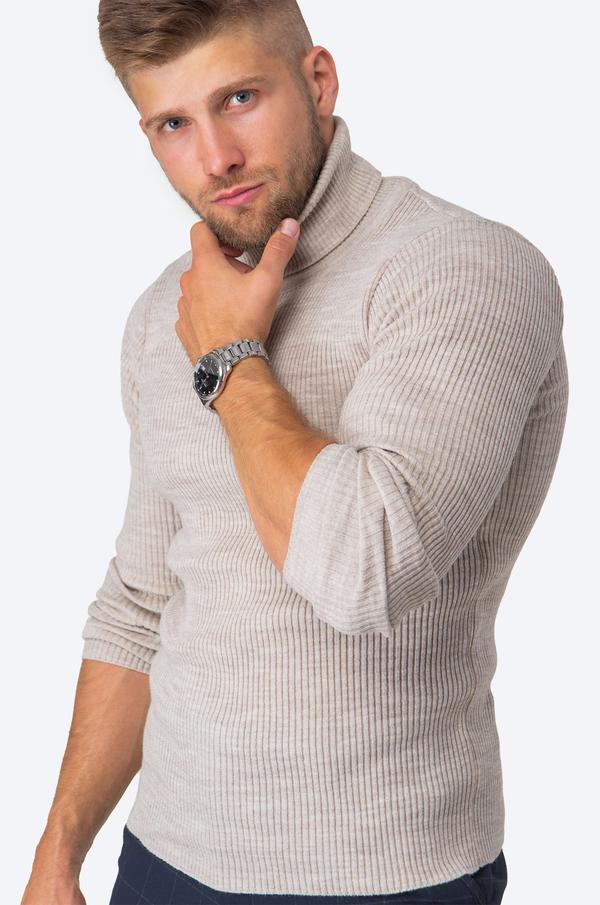 Мужской свитер в рубчик с высоким воротом Happyfox