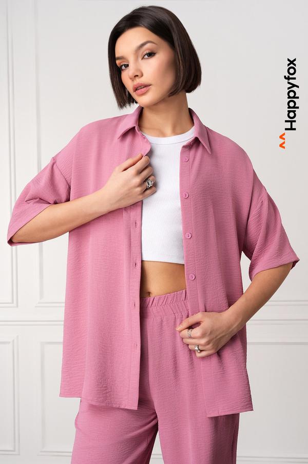 Женский летний костюм оверсайз из ткани-жатка Happyfox