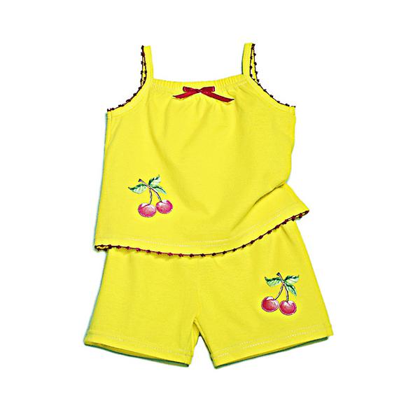 Низ и бретели майки обработаны ажурной строкой контрастного цвета, небольшой принт; шортики свободного кроя средней длины, пояс на эластичной резине, принт. Цвета в ассортименте.
