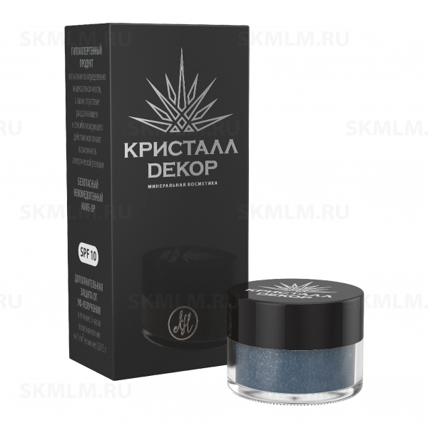 Тени – это основной штрих в создании макияжа с минеральной декоративной косметикой «Кристалл Dекор». Кобальтовый цвет является олицетворением благородства и роскоши. Кобальт хорошо знаком по изысканным фарфоровым сервизам – это сложная смесь оттенков сине-голубого и темно-фиолетового цвета. Тени с мокрым эффектом «Тёмный кобальт» могут наноситься как соло на всю поверхность подвижного века, так и использоваться для моделирования глаза. Действие: делает взгляд выразительным, элегантным; помогает создать глубину макияжа, оттенить цвет глаз; в сочетании со светлыми оттенками, помогает создать контрастный макияж. Продукт можно протестировать заказав пробник данной позиции. Тонкости применения Плоской маленькой кистью наберите достаточное количество теней, стараясь распределить их по всему ворсу. Нанесите оттенок на подвижное веко. Для придания сияния можете использовать шиммер. Для акцентирования в макияже обмакните кисточку, стряхните излишки, следуя линиям, проведите во внешнем углу глаза линии, затем тщательно растушуйте. Для создания более яркой линии подводки слегка намочите тонкую кисть, обмакните в тени и проведите линию по контуру роста ресниц. Подробная инструкция с рекомендациями по созданию макияжа находится внутри каждой упаковки. Форма выпуска Мелкодисперсный порошок в упаковке весом 1,5 грамм. Условия хранения Хранить в сухом месте в закрытой банке. Не допускать попадания влаги внутрь. Срок годности 5 лет.