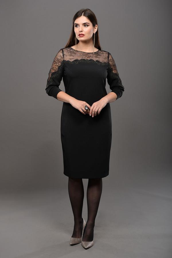 Силуэт: прилегающий Тип ткани: плательная. Состав: Полиэстер 95% спандекс 5% подкладка: полиэстер 100%. Вырез горловины: округлый Длина изделия: по среднему шву спинки - 96 см Длина рукава: втачной - 51 см Вид застежки: потайная молния сзади Дополнительное описание: изделие на подкладке, разрез сзади Декоративные элементы: кружево, вышивка