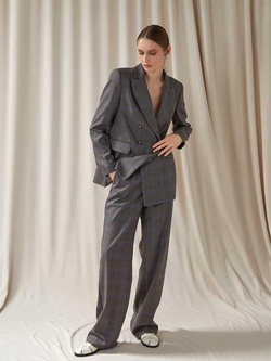 Прямые брюки из эластичной ткани коричневого цвета с принтом.