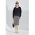 Джемпер трикотажный свободного кроя. Вырез горловины V-образный. По линии талии вставлена отделка из сетки. Рукава длинные с манжетой по низу. Длина джемпера выше линии бедер.