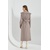 Платье длинное полуприлегающего силуэта. Застежка двубортная на петли и пуговицы. Вырез горловины V-образный. Большой отложной воротник. Рукава прямые длинные. По переду карманы в рельефах. В комплекте съемный ремень.