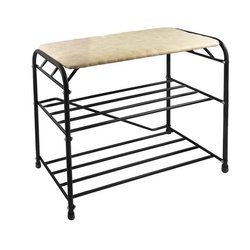 / Подставка для обуви 3 полки 65 с сиденьем замша цв. Чёрный арт.ПОС62 650*320*485