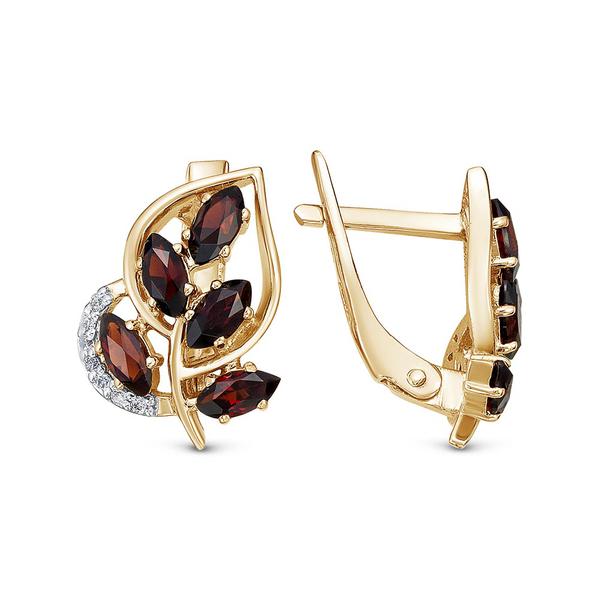 Производитель: ЗАО "Красная Пресня"; Вид металла: Золото 585 пробы. Красное; Вставки: Фианит (недрагоценный камень), Гранат (полудрагоценный камень); Покрытие: Выборочное родирование; Вес изделия *: 4.19 гр; Ширина: 12 мм; Длина: 16 мм; Цена за грамм: 5200 руб.; Вес вставки в изделии: 2.5 карат; склад: 0; салон: 3