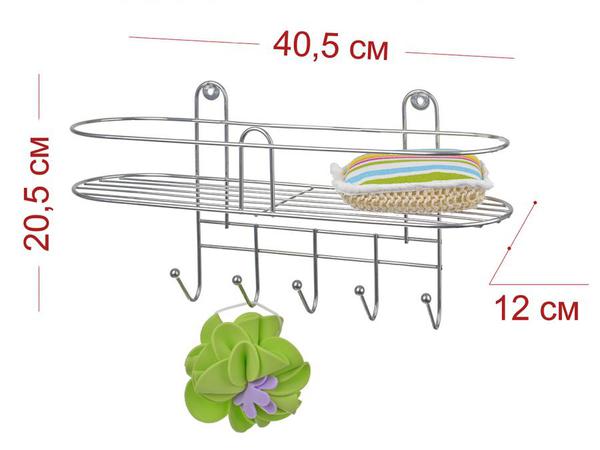 Полка в ванную 5 крючков круглая хром (20,5*12*40,5см)
