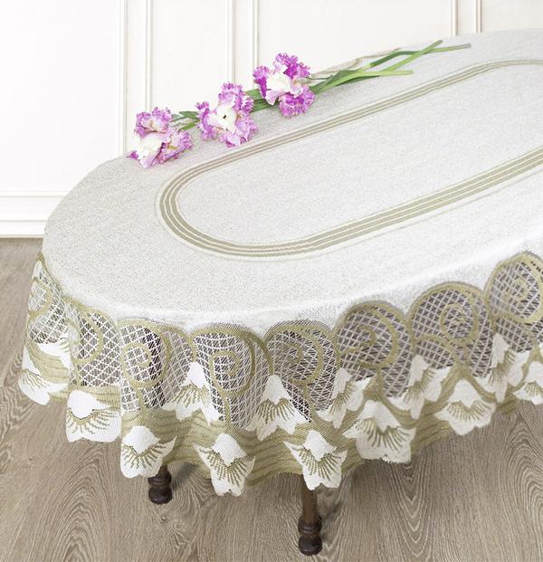 / Скатерть арт. 230411/140/3, овальная, размеры 140 см х 240 см, цвет кремово-золотистый
