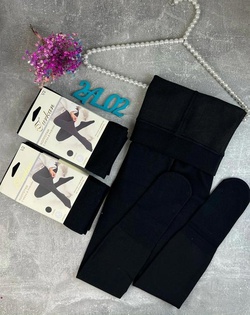 Термо колготки с мехом Мягкая и удобная Не скатывается хлопок 85% TURKAN В вертикальную полоску Качество рубчик Размер 52-56 Цвета черный