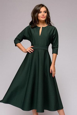 Платье изумрудного цвета длины миди с рукавами "летучая мышь"