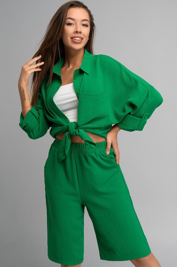 Женский летний костюм оверсайз из ткани-жатка Happyfox