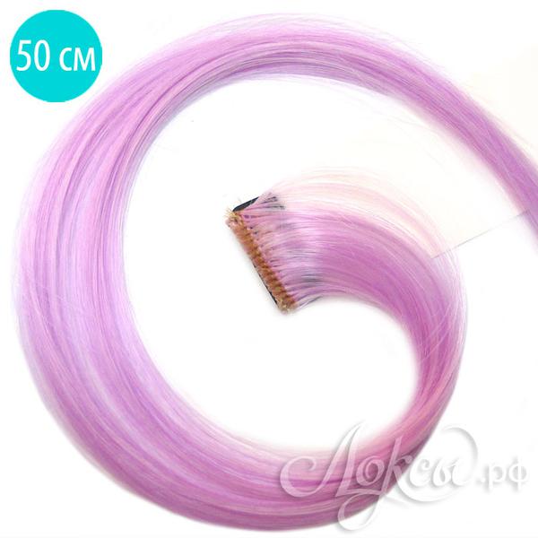 Цветные пряди волос на заколках. Светло-Сиреневый. 1 шт.