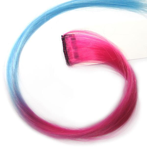 Цветные пряди волос на заколках. Розовый + Голубой 1 шт.