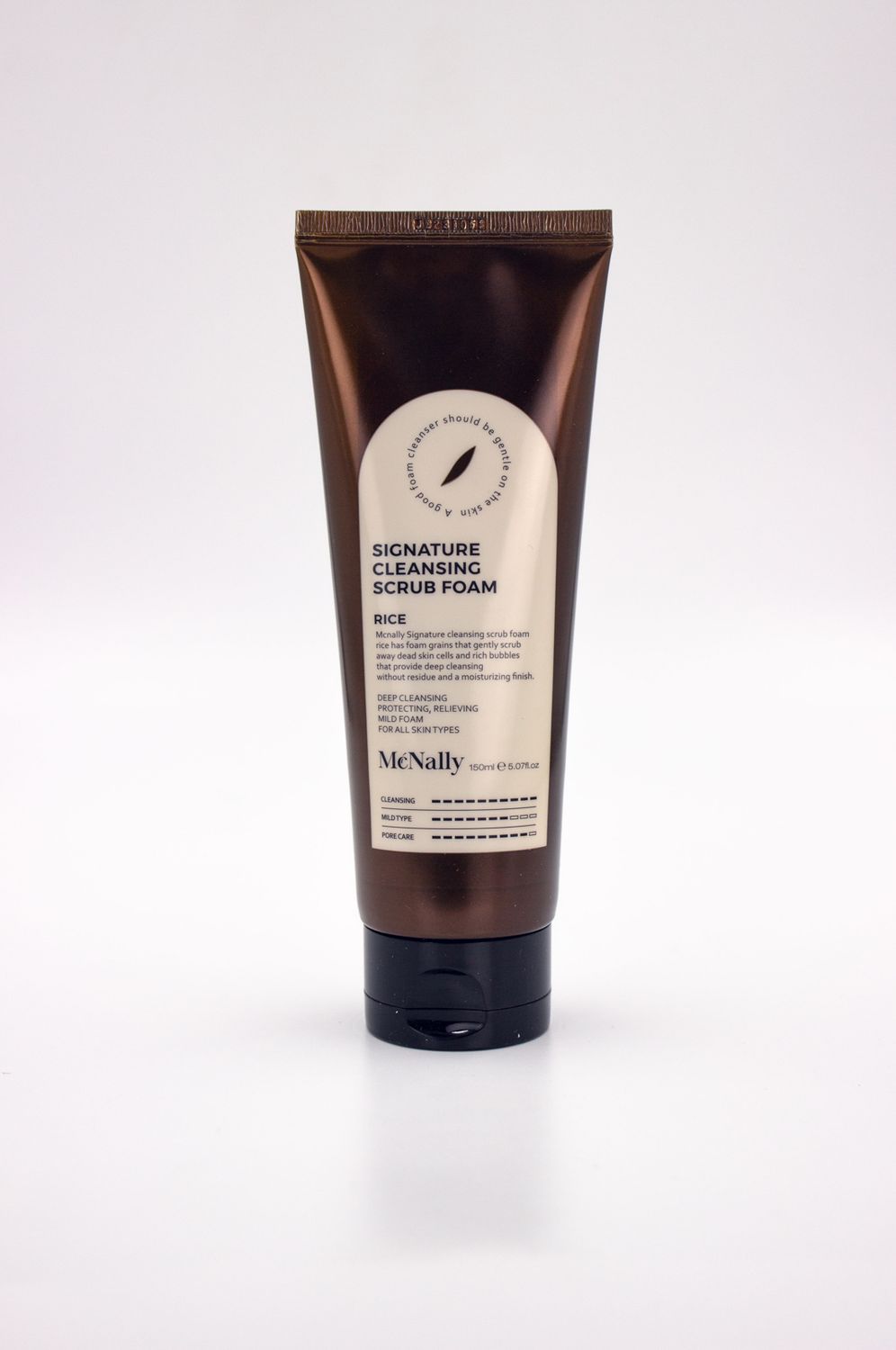 Пенка-скраб для лица с экстрактом риса Signature Cleansing Foam Rice Scrub эффективно очищает, деликатно отшелушивает, выравнивает рельеф и тон, увлажняет, питает, не оставляет после применения ощущения сухости и стягивания. Пудра из скорлупы грецкого ореха бережно отшелушивает, эффективно очищает кожу от загрязнений и излишков себума, обеспечивает микромассаж, улучшает микроциркуляцию, ускоряет обновление клеток, выравнивает поверхность и улучшает цвет кожи. Экстракты алоэ, ромашки, эклипты заживляют, успокаивают, стимулируют микроциркуляцию и обмен веществ. Экстракт риса в качестве основного компонента глубоко увлажняет, снимает раздражение и зуд, нормализует работу сальных желез, сужает поры, содержит множество витаминов и минералов, которые питают кожу.