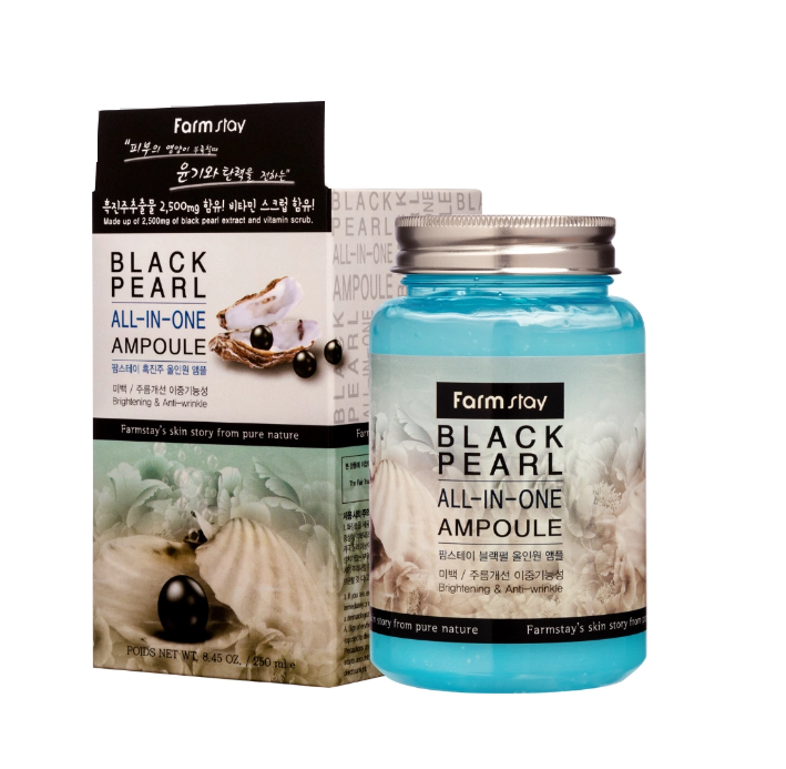 FarmStay Black Pearl All-In One Ampoule — это многофункциональная ампульная сыворотка для лица с экстрактом чёрного жемчуга. Она увлажняет и разглаживает кожу, уменьшает выраженность морщин, снимает напряжение и стресс, способствует восстановлению упругости и гладкости дермы.
