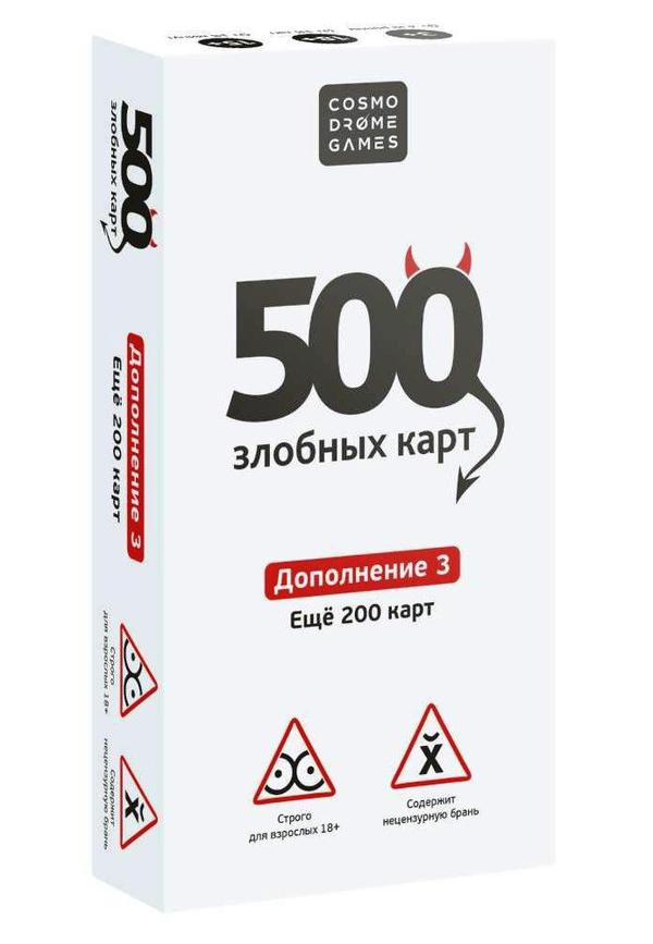 Еще 200 новых карт для популярной игры! Белое дополнение идеально для тех, кто заиграл основную колоду «500 Злобных карт» до дыр.