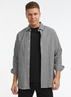 Рубашка прямого кроя с длинными рукавами. Ткань из хлопка приятна на ощупь, а сплошной клетчатый рисунок смотрится лаконично и элегантно. Модель с отложным воротником без карманов и сложных конструктивных деталей легко впишется в повседневные комплекты различных стилей. Широкие манжеты имеют застежку на пуговицы, а скругленный низ спинки позволяет носить рубашку навыпуск.
