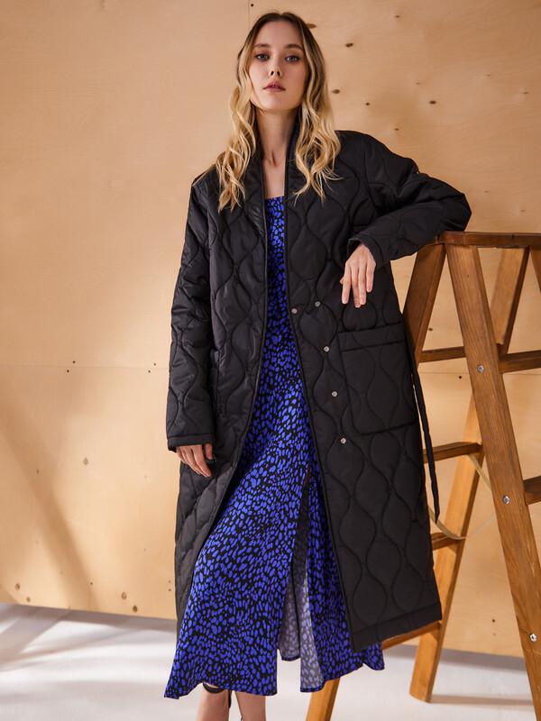 Стеганый плащ-кимоно прямого силуэта. Рукав с втачным плечом.