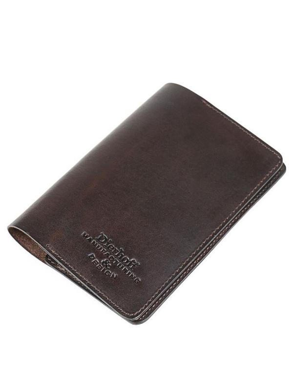 Мужская кожаная обложка для паспорта от Dierhoff. На внутренней стороне кожаные захваты, в правом находятся три кармашка для карточек. Обложка для паспорта функциональна и долговечна, изготовлена с использованием значительной доли ручного труда из высококачественной, плотной кожи растительного дубления, которая держит форму без картона или пластика, неприхотлива, надёжна. Обложка упакована в подарочную коробку Dierhoff.