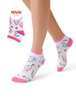 Женские носки MiNiMi с трендовым рисунком сердечки. Изготовлены из высококачественного хлопка, который отлично впитывает влагу, обладает нежной текстурой и подходит даже для чувствительной кожи. Удобная резинка и кеттельный (плоский) шов на мыске обеспечивают оптимальный комфорт в течение всего дня.