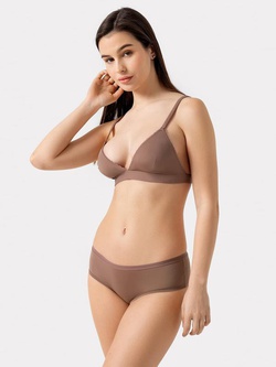 Трусы женские, средняя линия талии, силуэт - шорты. Передняя и задние детали выполнены из трикотажного эластичного полотна. Подкладка ластовицы из хлопка, верхний срез отлетной. По верхнему срезу трусов жилка, нижние срезы обработаны в подгибку.