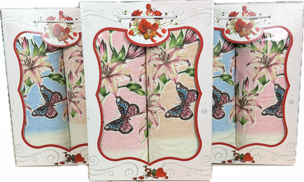 / Набор махровых полотенец ЛИЛИИ С БАБОЧКАМИ 2 пр р-р 50х90