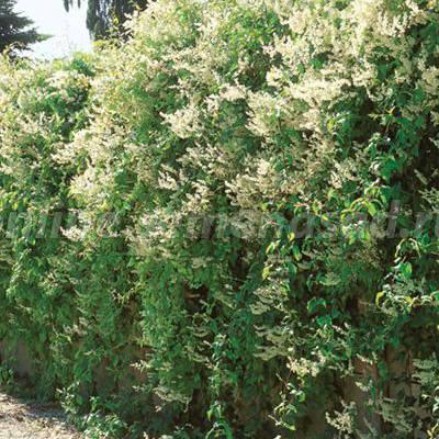 Неприхотливая лиана с очень активным ростом. Листья зеленые, яйцевидные, длиной 4-9 см, копьевидные у основания, волнистые по краю. Цветки белые, мелкие, многочисленные. Цветет в июне-июле. В условиях средней полосы России может подмерзать зимой, но весной дает новый прирос до 7 м. Ценится за ярко-зеленую густую листву.