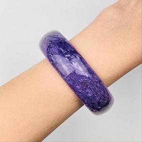 ПРОВЕРИТЬ НАЛИЧИЕ: https://samotsvet.ru/catalog/braslet-tselnyy-iz-charoita_1.html Камень: Чароит Поверхность: Гладкий Месторождение: Россия Размер: 21; мм Диаметр: 63 мм Вес изделия: 95 гр Минерал: Чароит Твердость по МООСУ: 6-7 Цвет: Фиолетовый, сиреневый Планета: Венера, Нептун, Плутон Чакра: Сахасрара Значение: Интуиция, мудрость, баланс ЦВЕТ: Фиолетовый