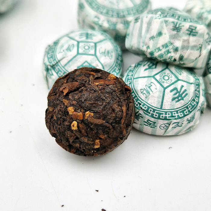 Шу пуэр запрессован в тоу чи с гречихой. Вкус древесно-травяной с легкой черносливовой ноткой. Заваривать при температуре 95°С.