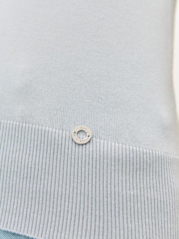 Цельновязанную футболку изготовили из шелковистой пряжи на основе вискозы. Базовая модель с коротким рукавом и круглой горловиной подойдет как для делового, так и для повседневного образа. Полуприлегающий силуэт и широкая резинка по низу изделия обеспечивают комфортную посадку по фигуре, а нижний край декорировали металлическим украшением.Лёгкая вязаная футболка дополнит образ стиле смарт - кэжуал.