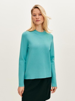 Жаккардовый джемпер бирюзового оттенка, отлично подойдет как для офиса, так и для повседневной носки. При изготовлении модели прямого силуэта с круглым вырезом горловины, естественной линией плеча и длинным втачным рукавом использовали пряжу на основе дышащей вискозы, которая почти не ощущается на теле.