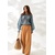 Блузка женская из воздушной вискозной ткани, прямая свободная с рукавом реглан, длиной до линии бедер. Перед цельный со сборкой по горловине. Спинка цельная с разрезом капелькой у горловины и застежкой на навесную петлю и пуговицу. По низу блузки в подгибку низа втянуты шнурки из основной ткани с выходом по боковым швам для затягивания. Рукав реглан одношовный, с вытачкой сверху, с разрезом внизу, на притачной манжете с завязками. Вырез горловины круглый, окантован косой бейкой.