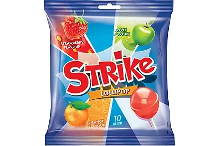 Карамель лед.на палочке Страйк асс.пакет/10шт