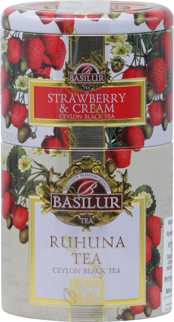 BASILUR. 2 в 1. Клубника/сливки-Рухуна 100 гр. жест.банка