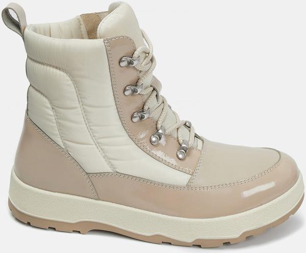 Женские ботинки ARCTIC молочного цвета. Верх модели выполнен из сочетания кожи, спилка и технологичного текстиля. Подкладка и кожа утеплены натуральным мехом. Двухсоставная подошва амортизирует и отлично держит сцепление со скользкой дорогой. Теплые ботинки ARCTIC - правильный выбор на самые холодные и снежные дни.