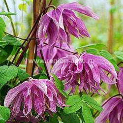 Польский сорт в продаже с лета 2012. Цветки всегда махровые – как на прошлогодних побегах, так и на побегах текущего года, очень крупные для группы Атрагене (диаметром 10-12 см), колокольчикообразные, свешивающиеся, слегка приятно пахнущие грейпфрутом, сидящие на пурпурных цветоножках. Цветет в мае и повторяет цветение, но уже менее обильно –летом. Имеет красивые темно-зеленые относительно крупные (до 20 см длиной и 16 см шириной) листья – тройные, тройчатосложенные, с красивой фактурой и зубчатыми краями. Достигает высоты 2 – 3 м. За опоры цепляется листовыми черешками. Морозостоек и неприхотлив. Обрезка: 1 группа (без обрезки). Использование: вертикальное озеленение. Пригоден для выращивания у ограждений, садовых опор, камней, старых пней, лиственных и хвойных кустарников. Может использоваться как почвопокровное растение.