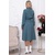 Платье из текстильного полотна,отрезное по линии талии,присобрано на эластичную резину.Горловина оформлена отложным воротником на стойке.По полочке-планка до талии с застежкой на петли и пуговицы.Юбка изделия расклешенная и летящая.В комплекте длинный пояс из основной ткани.