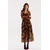 Платье выполнено из шифона с рисунком. Платье Х-образного силуэта, отрезное по линии талии, длиной миди. Перед и спинка лифа со средними швами. Вырез V-образной формы. Рукав цельнокроенный, покроя "летучая мышь". Низ рукава присборен, на эластичной тесьме. Юбка расширена к низу. Низ юбки обработан широкой оборкой. По линии талии вставлена эластичная тесьма. Платье на трикотажной подкладке, лиф которой выполнен в виде топа. В комплект входит съёмный пояс с обтяжной пряжкой.