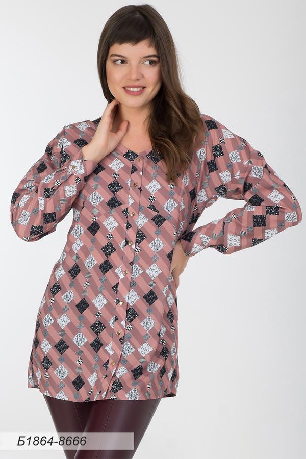Блуза из креп-шифона свободного прямого силуэта. V-образный вырез переходит в аккуратную планку на пуговицах. Длинный рукав на манжетах. Длина изделия по спинке в 46 размере - 76см . Рост модели на фото 168см.