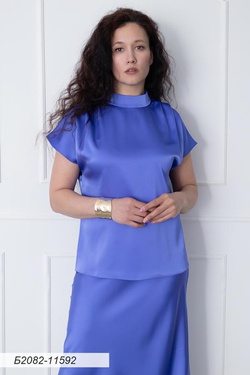 Блуза полуприлегающего силуэта с аккуратной стойкой по горловине. Материал: шелковистая ткань яркого василькового оттенка. Короткий цельнокройный рукав. Застежка потайная молния по спинке. Блуза для эффектных нарядных образов с юбками, брюками из шелка, например, как на фото с юбкой миди длины арт.Ю122.М1-11592. Длина изделия по спинке в 46 размере - 66,5см. Рост модели на фото 168см Обращаем Ваше внимание, что цветопередача товаров, представленных на нашем сайте, может несколько искажать реальные цвета, поскольку это зависит от настроек Вашего монитора