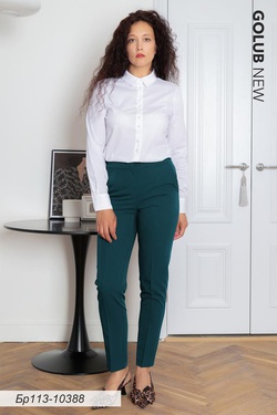 Брюки зауженные к низу. Выполнены из костюмной ткани с высоким содержанием вискозы. Лаконичная по крою модель дополнена классическими стрелками. По спинке в поясе удобная широкая резинка. Зауженный силуэт с высокой посадкой визуально вытянет фигуру и подчеркнёт все ее достоинства. С брюками будут сочетаться однотонные базовые рубашки или блузки с принтом, трикотажные футболки и топы. Длина брюк по внутреннему шаговому шву 76см, по внешнему боковому шву (с поясом) 102см. Ширина по низу 16см. Рост модели на фото 168см. Обращаем внимание, что цветопередача товаров, представленных на нашем сайте, может несколько искажать реальные цвета, поскольку это зависит от настроек Вашего монитора.