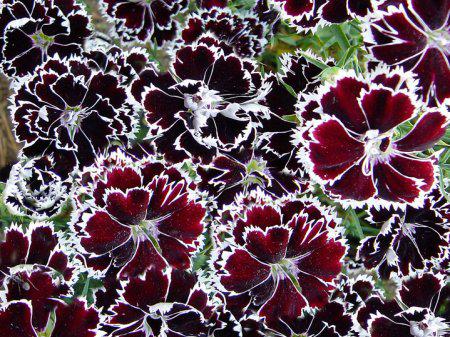 Купить семена гвоздики Геддевига. Эта разновидность китайской гвоздики была выведена в 19 веке Петербургским ботаником и является очень морозостойким сортом для средней полосы россии и даже более северных районов. Высота куста не превышает 30-40см. Цветок крупный (5-7см) с белой окантовкой пурпурных зубчатых лепестков. С широты Воронежа выращивают как многолетнюю культуру- севернее рассадой, посеянной в марте в грунт как однолетник. Цветет с августа до октября.