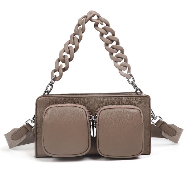 Оригинальная сумка Mironpan через плечо в цвете корица выполнена из натуральной зернистой кожи . Сумка закрывается на молнию с металлическим поводком. На лицевой и тыльной стороне расположены накладные карманы быстрого доступа на молнии. Внутри 2 боковых кармана для мелочей: открытый и на молнии. В качестве декора выступает съемная цепочка со большими звеньями, которая также может быть использована в качестве короткого ремня. Текстильный плечевой ремень съемный, регулируется по длине, ширина - 3 см . Сумка дополнена прямоугольной монетницей, которая крепится к аксессуару с помощью карабина, размер 9*6,5*1 см Размер: 25 x13 x 8 cm ( длина x высота x ширина)